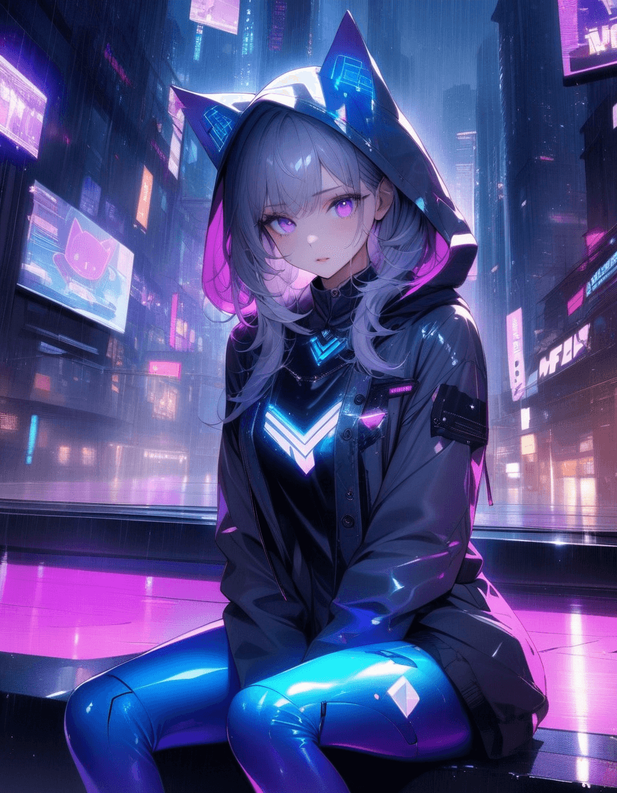 Rainy night. Boop crosses the night again through the colorful neon signs.